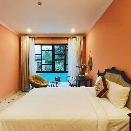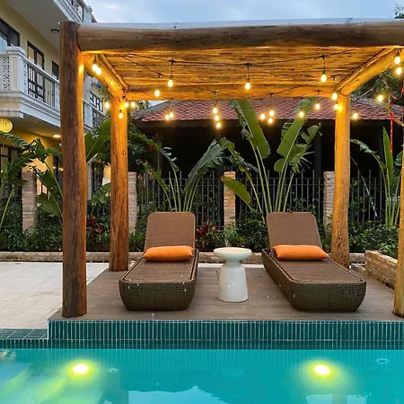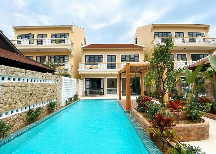 Το Ha Sanh Villa - Private Villa In Hoian Χόι Αν απέχει περίπου 2 χλμ. από τη Γέφυρα Chua Cau και προσφέρει πισίνα. Το διαμέρισμα διαθέτει επίσης βεράντα με τραπέζι, πισίνα και καθιστικό.